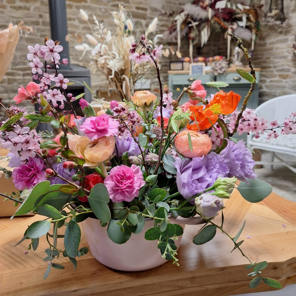 Composés de fleurs fraîches françaises et de saison, les bouquets de l’atelier sont réalisés à la demande avec les fleurs disponibles sur le moment chez les producteurs.